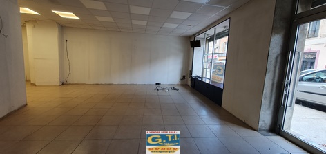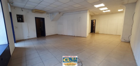un local commercial vide et un appartement au-dessus.