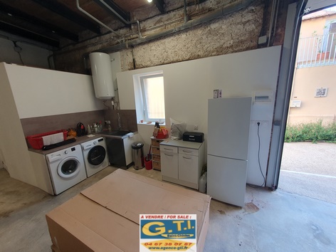 grand garage d’environ 100 m² avec large portail motorisé,